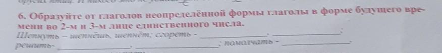 6. Образуйте от глаголов неопределённой формы глаголы в форме будущего вре-