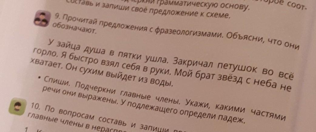 1. Заяц испугался. 2. Петух очень сильно закричал. 3. Я настроился, приготовился к чему то. 4. Брат не очень умный. 5. Не получит наказания.