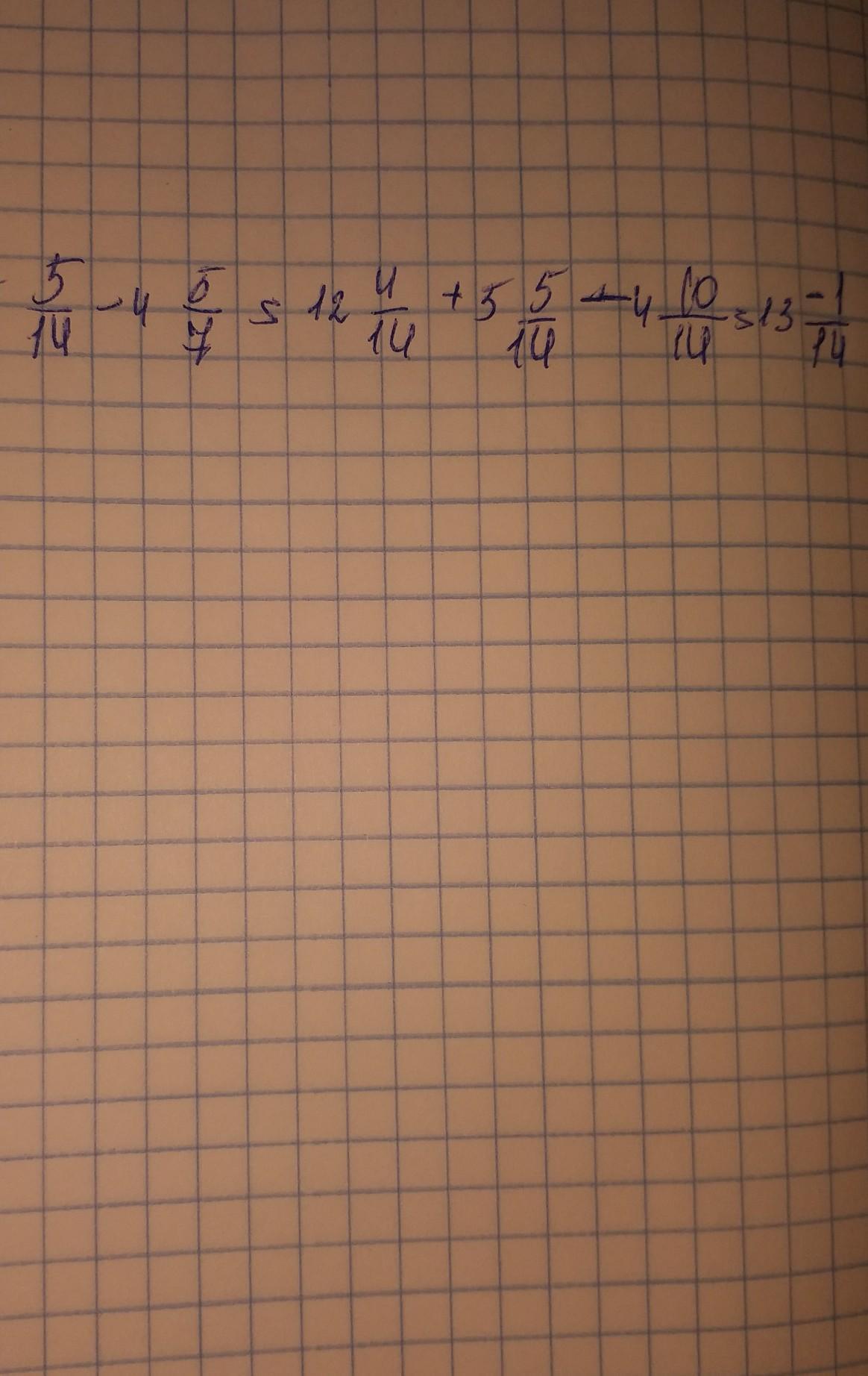 вот 12 2/7+5 5/14-4 5/7=12 4/14+5 5/14-4 10/14=13 -1/14