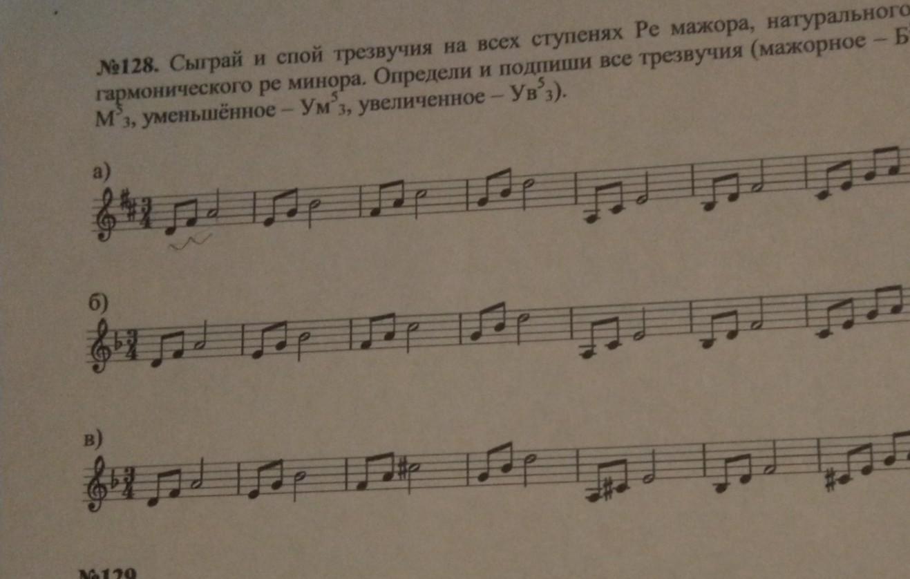 128. Сыграй и спой трезвучия на всех ступенях ре мажора, натурального ре минора и