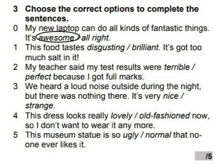 1 - disgusting 2 - perfect 3 - strange 4 - old-fashioned 5 - ugly