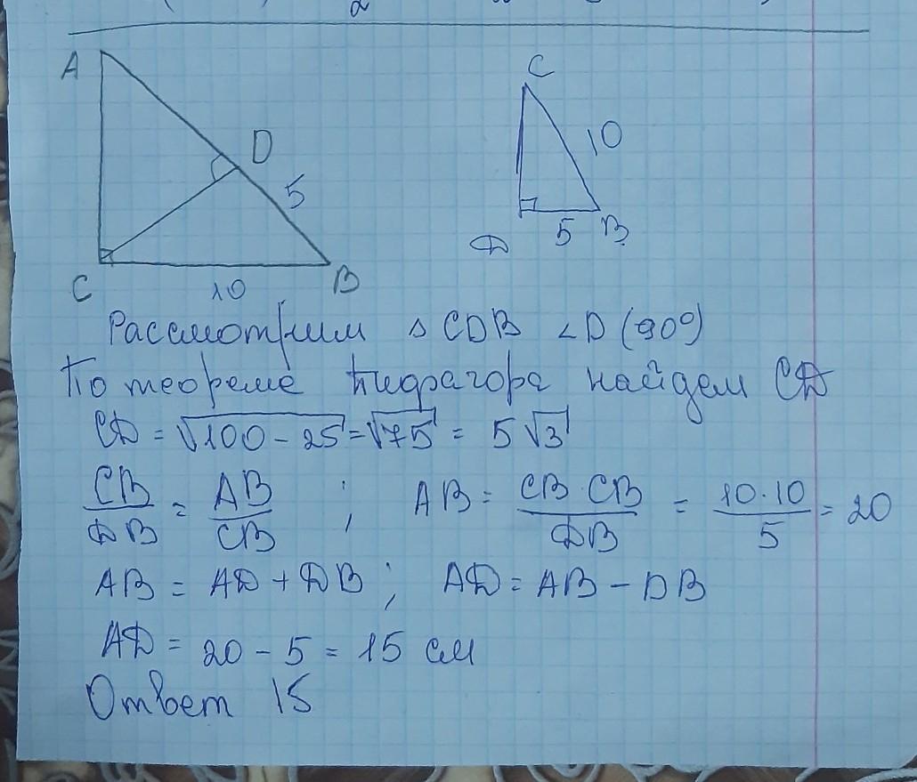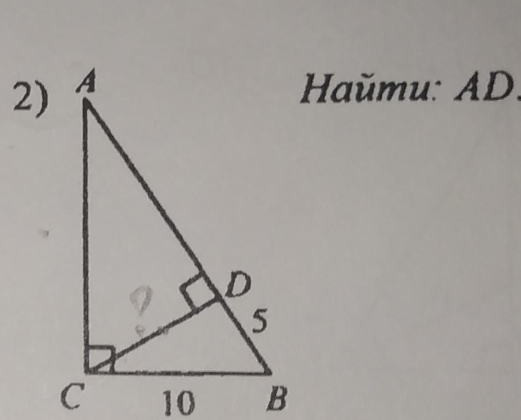 2) по теореме CD²=AD*DB ( квадрат высоты равен произведению отрезков гипотенузы, на которые гипотенуза делит высота )