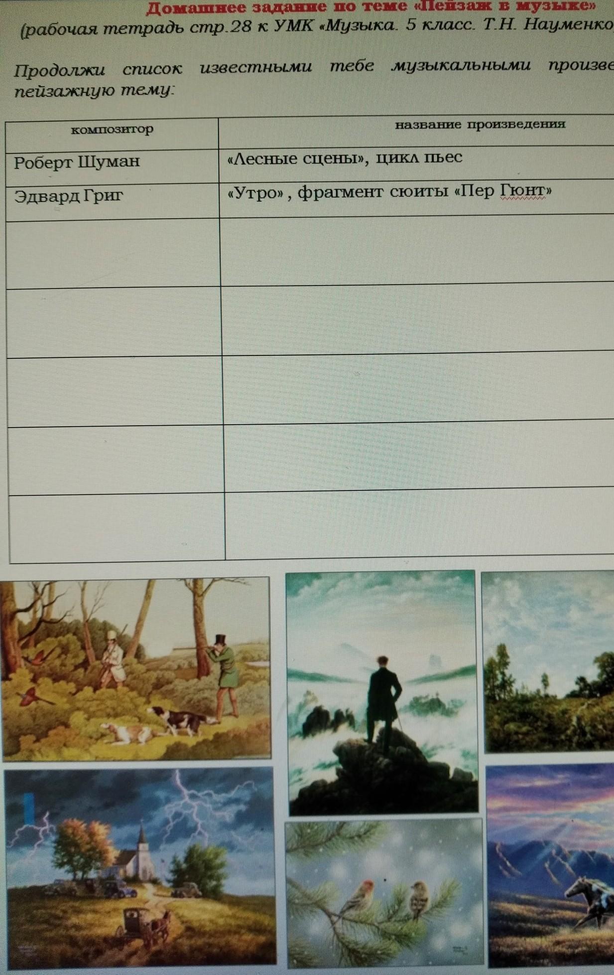 ПОМОГИТЕ ПОЖАЛУЙСТА.!!!СРОЧНО!Продолжи список известных тебе музыкальными произведениями на пейзажную тему: