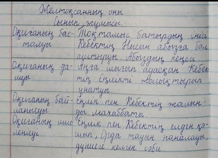 3.Шыгарма оқиғаларын ретімен орналастырып, композициясын құрайық. Үлгі:
