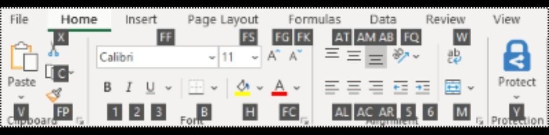 На стрічці згруп складно згрупувати пов'язані параметри на вкладках. Наприклад, на вкладці Основне в групі Число міститься параметр Числовий формат. Натисніть клавішу Alt, щоб відобразити сполучення клавіш стрічки під назвою Підказки клавіш як букви на маленьких зображеннях поруч із вкладками та параметрами, як показано на зображенні нижче.