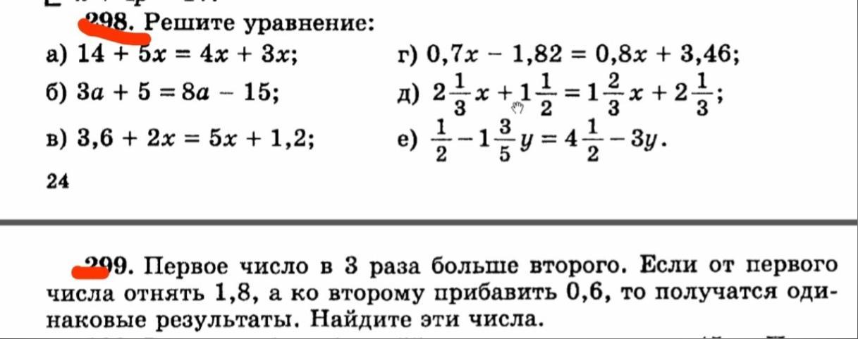 г) 0,7x - 1,82 = 0,8x + 3,46 д) 2, 1/3х + 1, 1/2 = 1, 2/3х + 2, 1/3