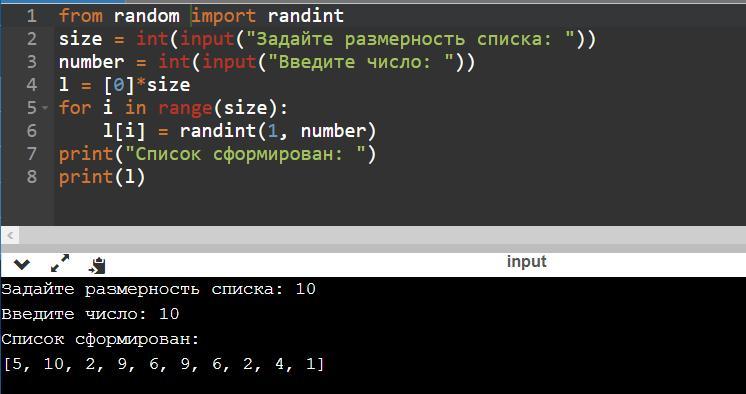 создайте алгоритм, который запросит у пользователя число. программа должна создать список и заполнить его элементами со значениями от 1 до введëнного пользователем значения. язык питон