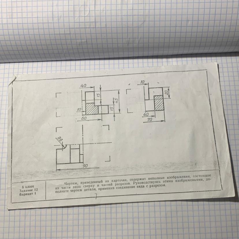 Чертеж, приведенный на карточке, содержит неполные изображения, состоящие