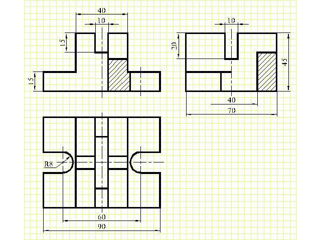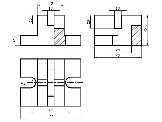 из части вида сверху и частей разрезов. Руководствуясь этими изображеннями, до-