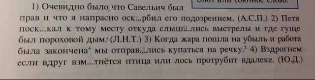 2)Петя поскакал к тому месту, откуда слышались выстрелы и где гуще был пороховой дым.