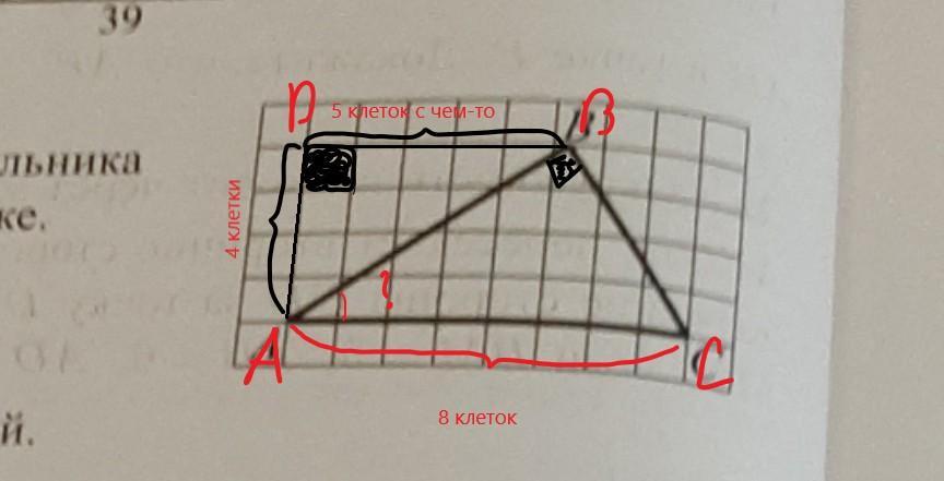P.S. можно было бы достроить так, тогда AB - гипотенуза и по Пифагору найти ее, но числа будут не очень даже если мы возьмем их как целые, то есть AD = 4, DB = 5, AB² = 16+25 = 41. AB = √41 . А потом уже BC тоже по Пифагору и потом tgA