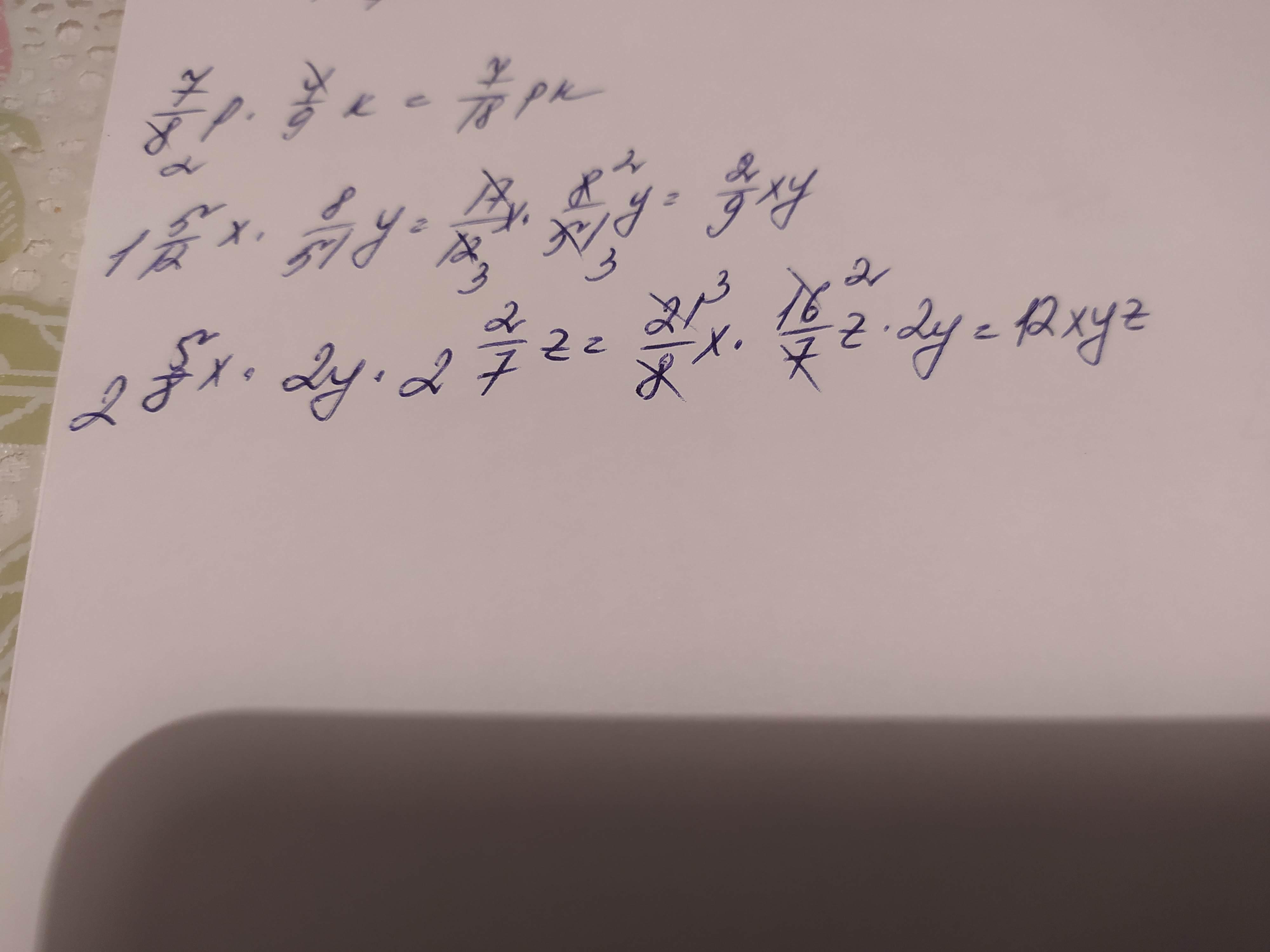 упростите выражение 7/8 p × 4/9 k. 1 5/12 x × 8 51 y. 2 5/8 x × 2 y x 2 2/7 z