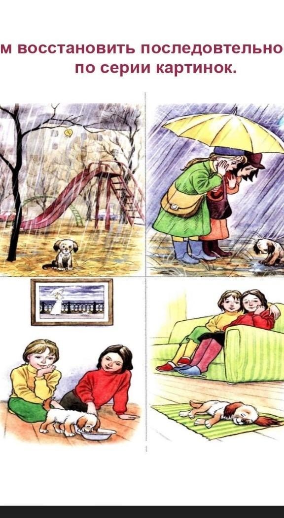 Собака по кличке Дружок сидела одна под дождем на детской площадке.Вокруг никого не было. Две девочки шли домой и увидели бедного дружка и захотели ему помочь. Они взяли его к себе домой, накормили и согрели. Девочки не стали возвращать собаку обратно на улицу, а оставили собачку себе. Дружок был рад!