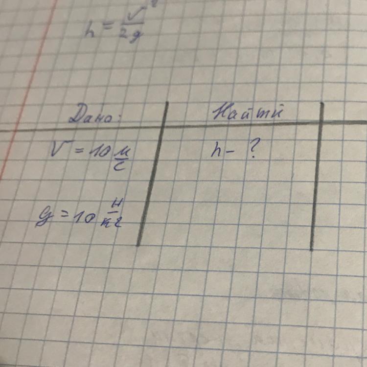 h = 10м/с ÷ 2*10н/кг = 0,5 м