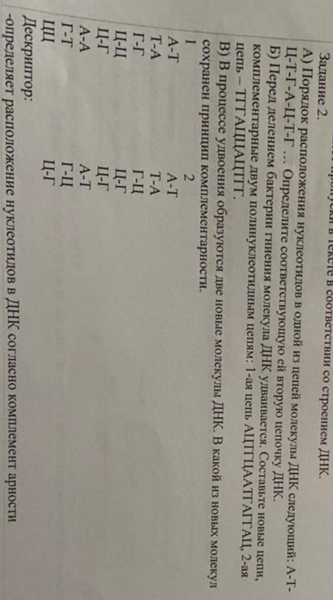Задание 2. A) Порядок расположения нуклеотидов в одной из цепей молекулы ДНК следующий:A-T-Ц-Т-Г-А-Ц-Т-Г...