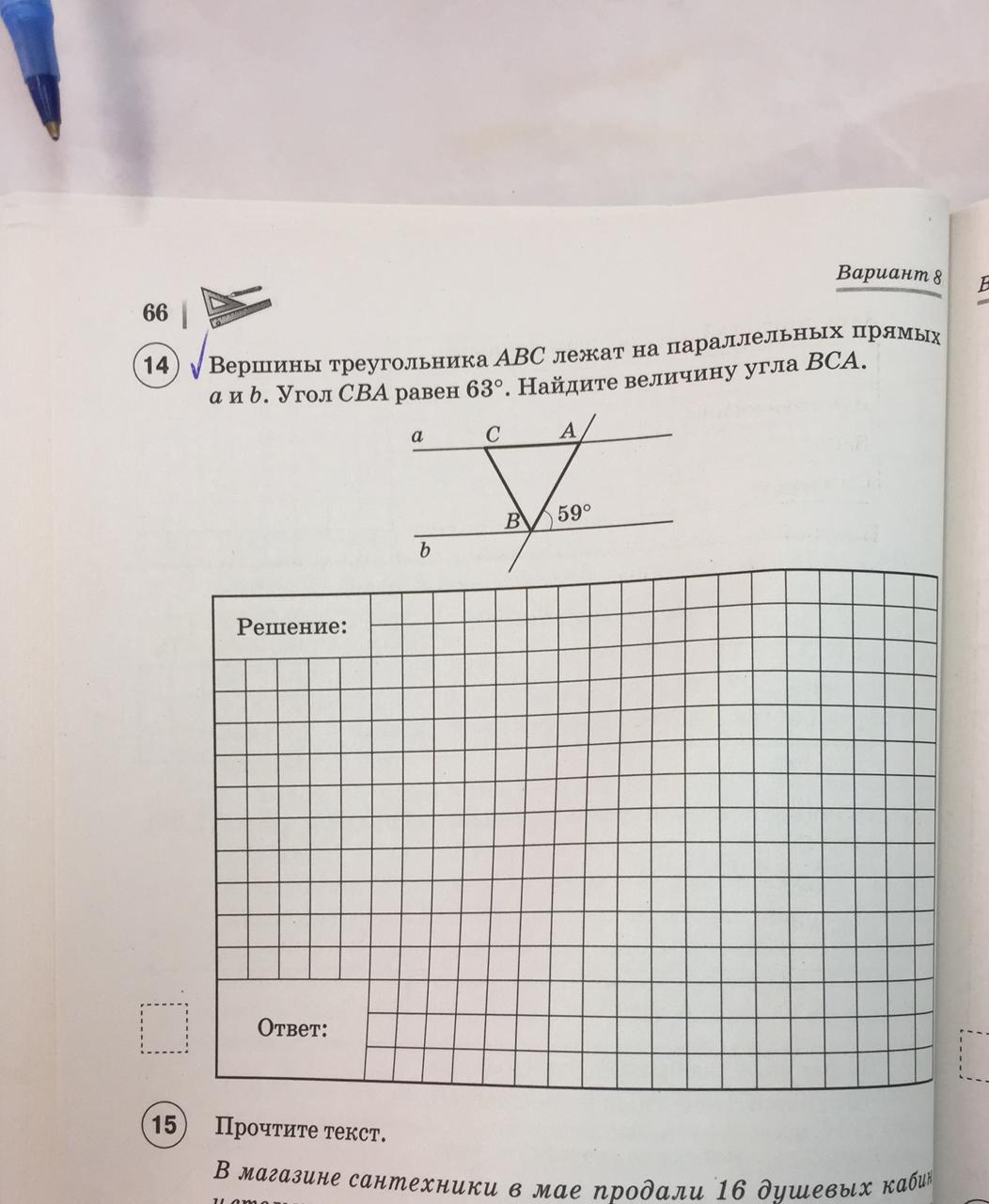 <ВСА=180°-<ВАС-<СВА=180°-59°-63°=58°