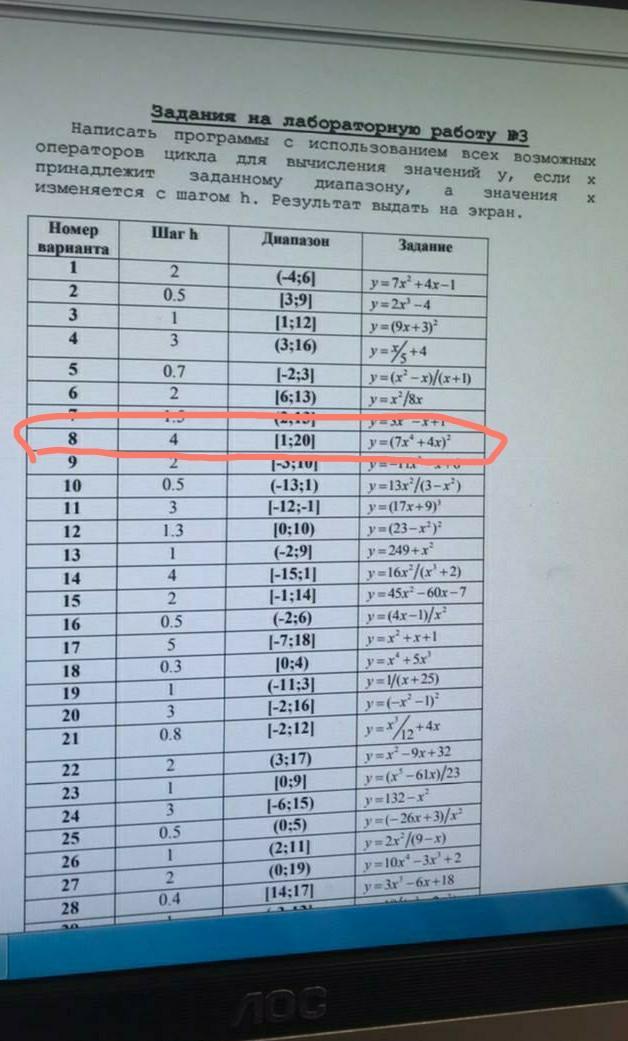 СРОЧНО напишите программу в паскале, я в этом вообще не шарю. На фото задние, нужен 8 вариант