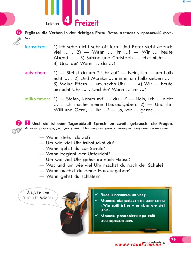 sechs Uhr auf. Wir stehen heute um acht Uhr auf. Und ihr? Wann steht ihr