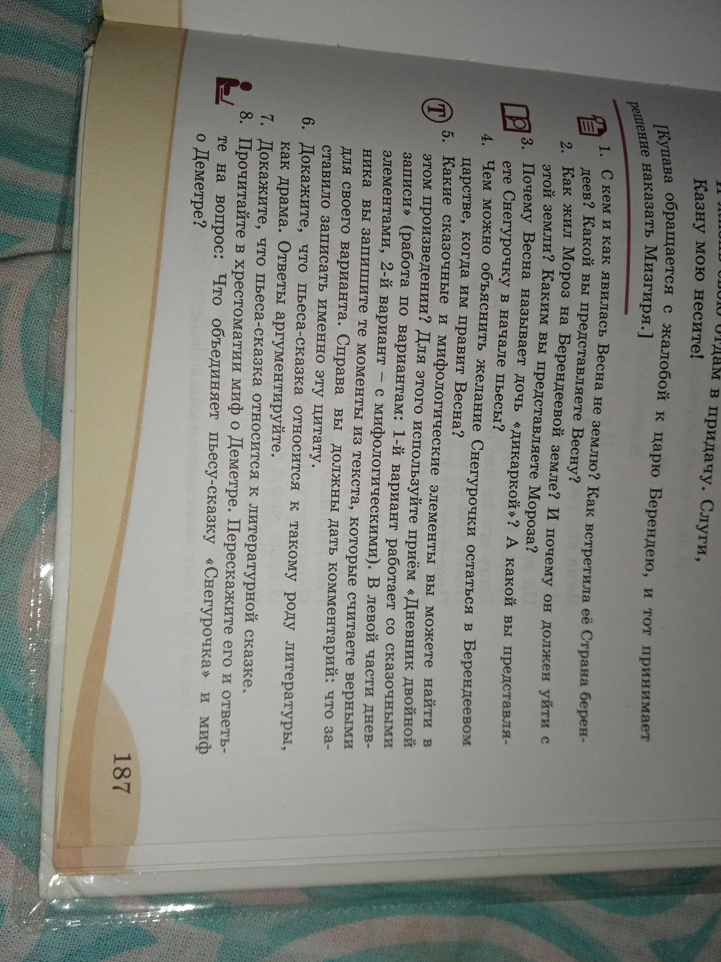 В начале рассказа весна не смогла превратить всю землю в весну. Представляю я её себе красивой ,жизнерадостной и счастливой. С дедом морозом у них случилось разногласие потому-что весна захотела чтобы их дочь побывала в реальном мире а Дед Мороз не соглашался.Я снегурочку представляю красивой с алым румянцем на щеках . И её называют дикаркой потому-что она не когда не была в реальном мире и незнаек их обычай и видёт себя по другому. И она там хочет остаться потому-что там ей понравилось и она бы не хотела вернутся обратно ведь там у нё есть друзья