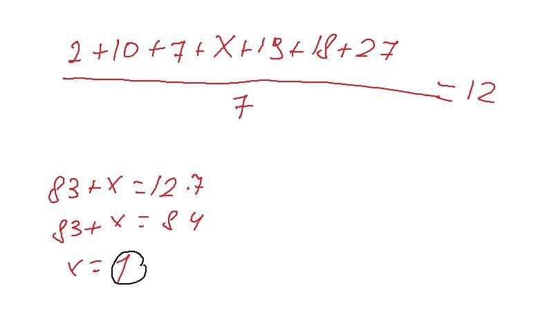 1) Т.к. среднее арифметическое равно 12, можно решить уравнение (см. первое фото) Неизвестное число равно 1