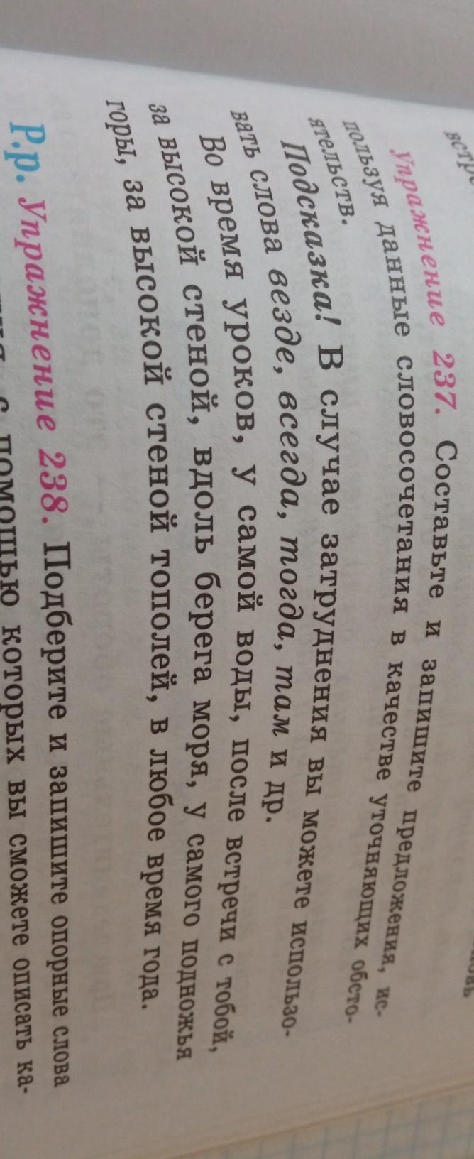 Упражнения 237.Составьте и запишите предложение,используя данные словосочетания в качестве уточняющих обстоятельств.