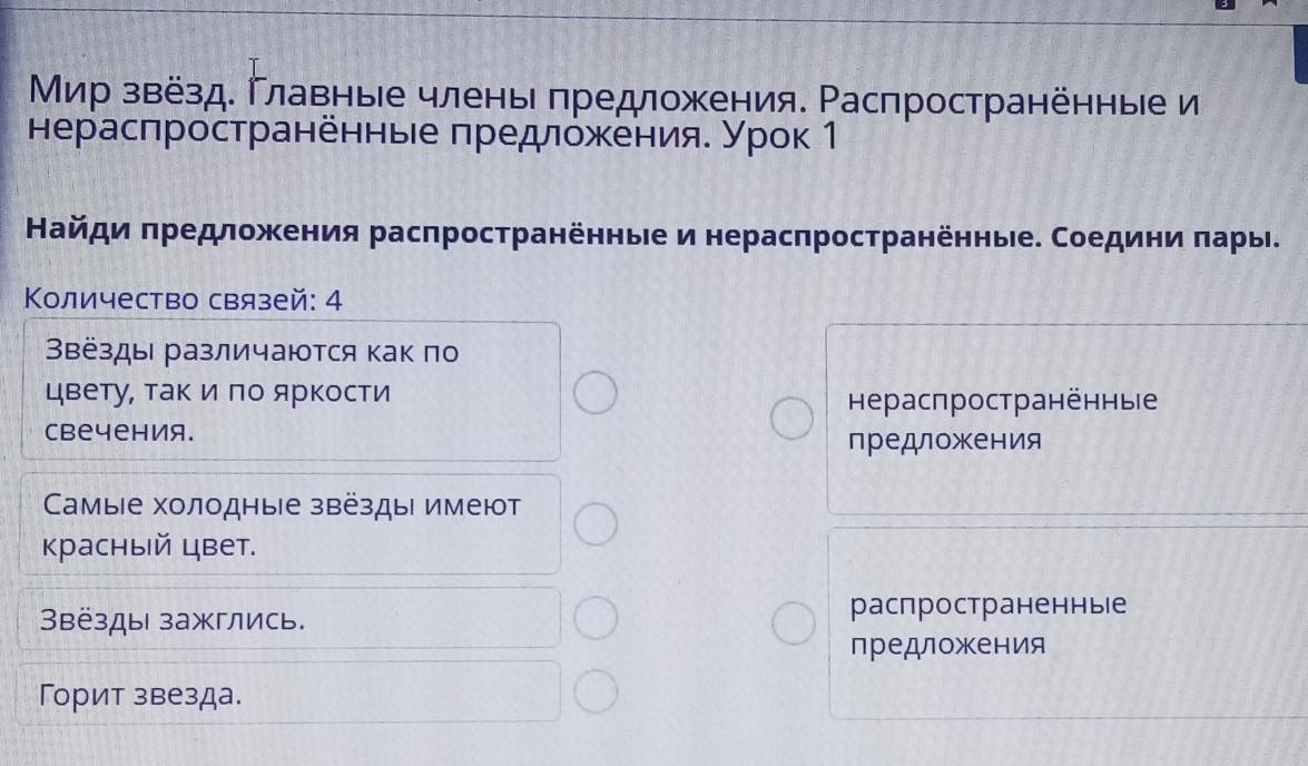 Звёзды зажглись. Нераспространённое предложение