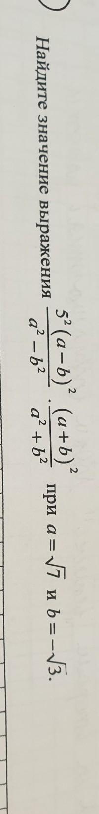 a=\sqrt{7}, \quad b=-\sqrt{3}: \quad \dfrac{25 \cdot ((\sqrt{7})^{2}-(-\sqrt{3})^{2})}{(\sqrt{7})^{2}+(-\sqrt{3})^{2}}=\dfrac{25 \cdot (7-3)}{7+3}=\dfrac{25 \cdot 4}{10}=