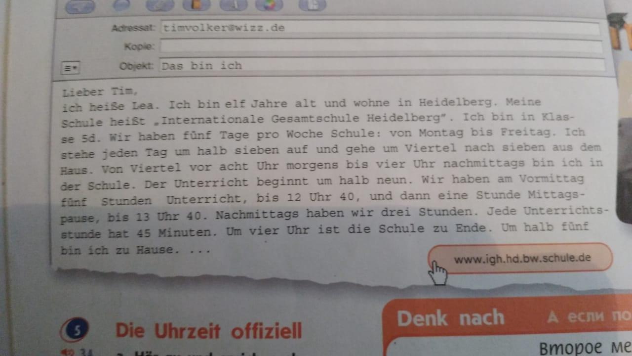 скажу пару ответов: 1. Elf 2.Heidelburg 3. "International Gesamtshule Heidelburg" 4. 5d