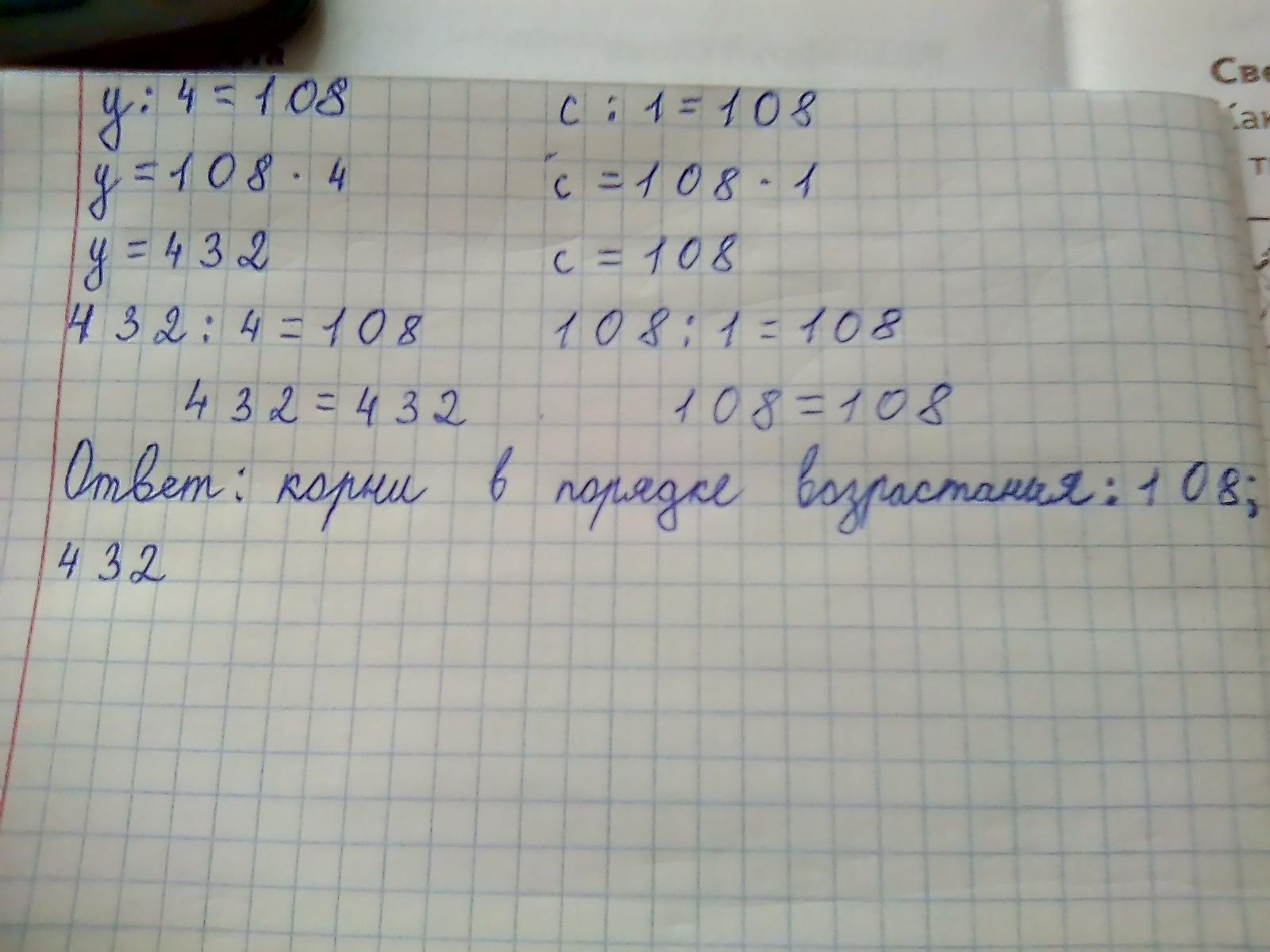 Ответ: корни в порядке возрастания: 108, 432