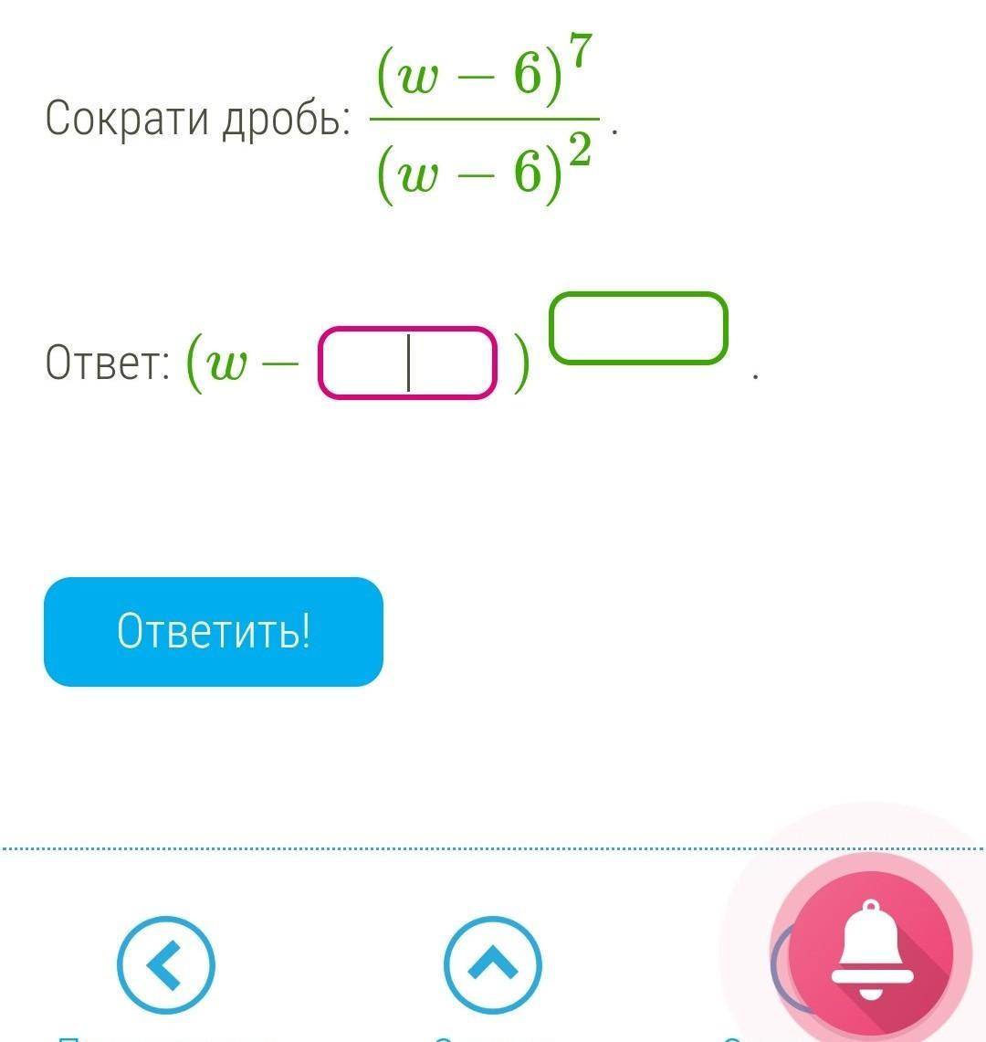 a^7/a^2=a^5; (w-6)^7/(w-6)^2=(w-6)^5