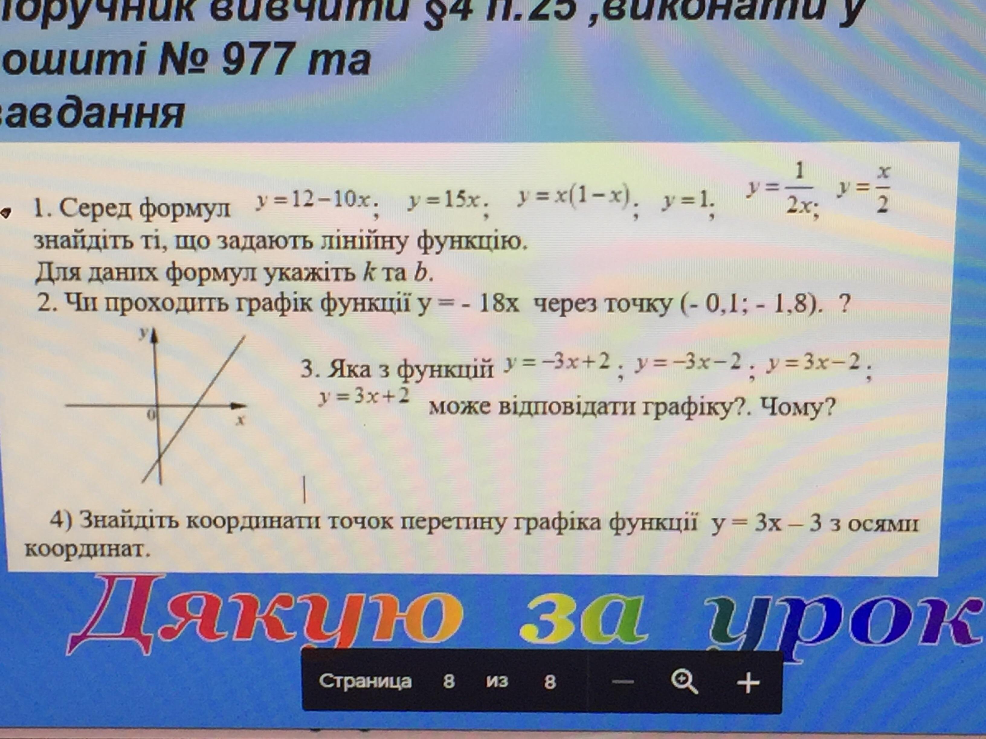 Коли графік перетинається з віссю х, то у = 0, або навпаки.