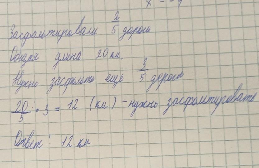 Длина дороги 20 киллометров засфальтировали 2и5 дроби дороги сколько лиллометров осталось засфальтировать