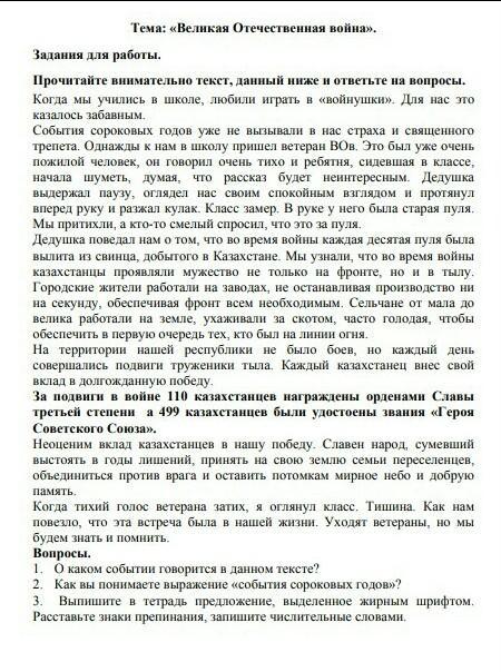 Тема :"Великая Отечественная Война; Прочитайте внимательно текст, данный ниже и ответьте на вопрос