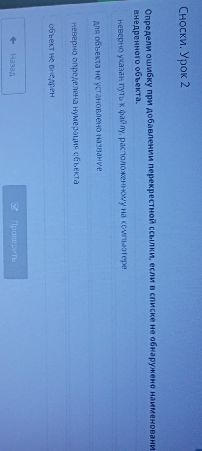 Определи ошибку при добавлений перекрестной ссылки, если в списке не обнаружено наименования