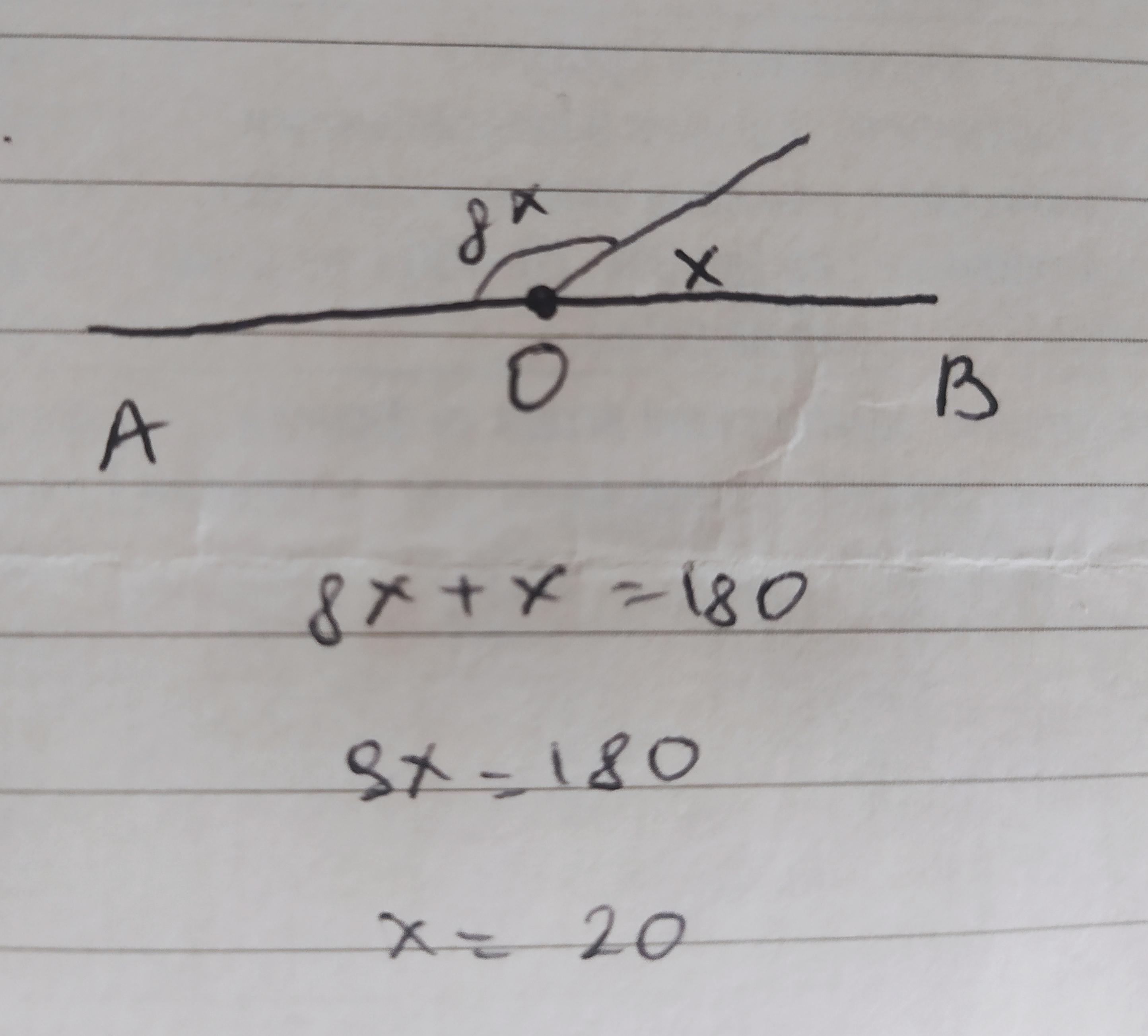 угол МОВ=20гр угол АОМ=180-20=160гр