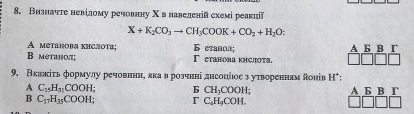 8. 2CH3COOH+K2CO3 -> 2СH3COOK+CO2+H2O