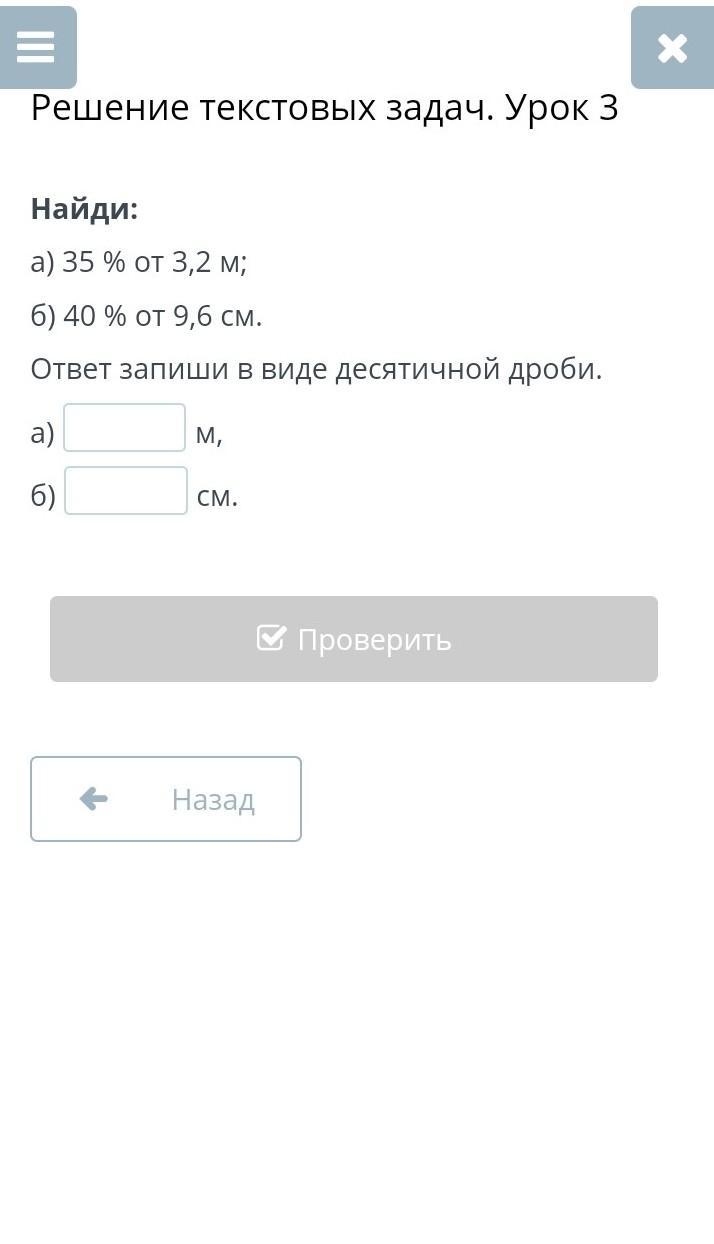 а) 35 % от 3,2 м;