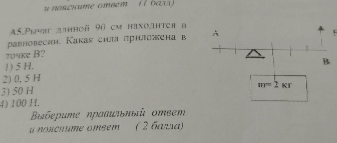 рычаг длиной 90 см находится в равновесии.Какая сила приложена в точке В?