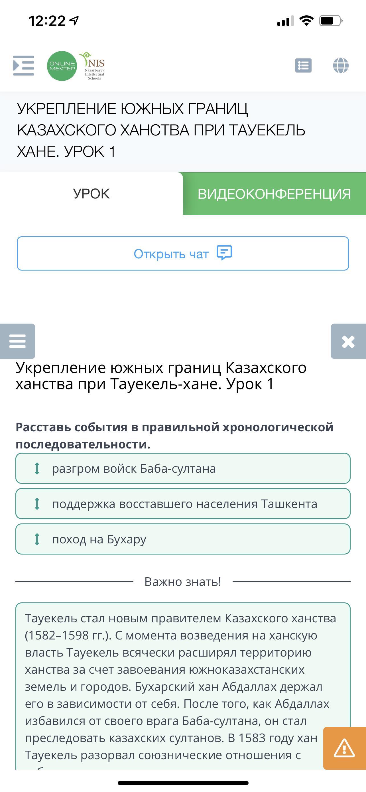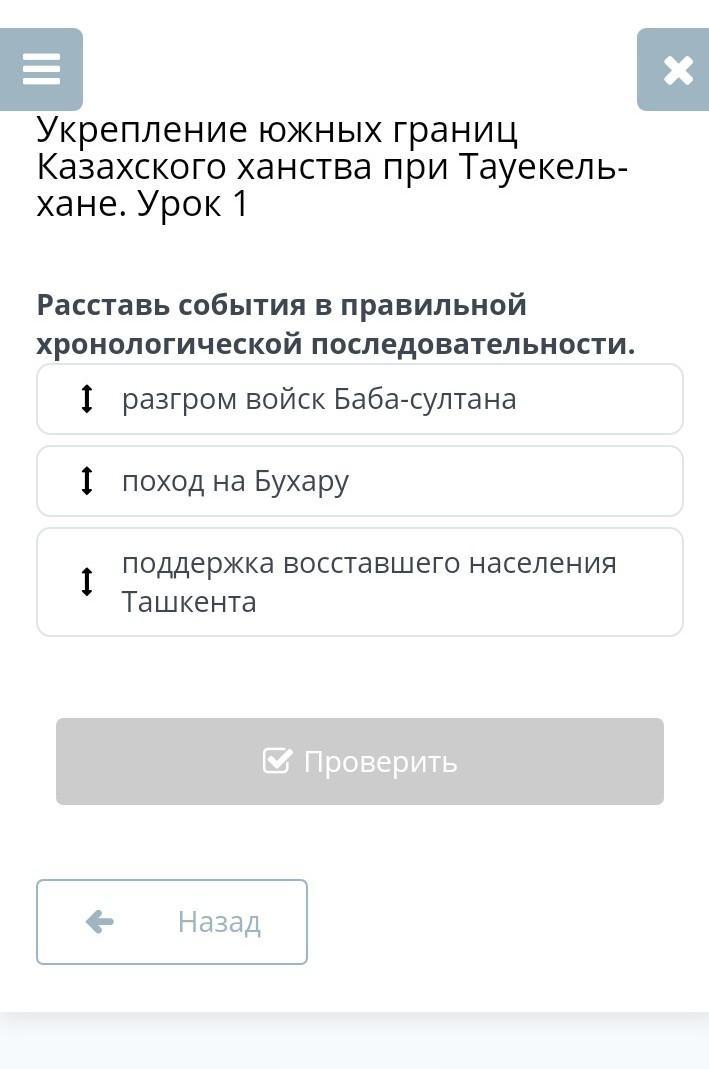 Расставь события в правильной хронологической последовательности. Укрепление южных границ Казахского ханства при Таукель-хане. Урок 1
