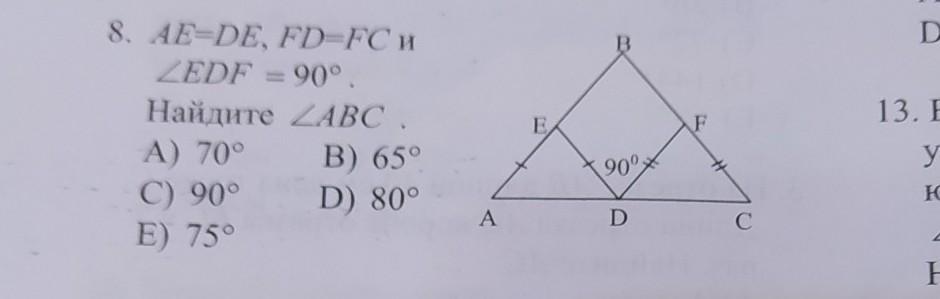 Пошаговое объяснение: Пошаговое объяснение: имеются два равнобедренных треугольника: АЕD и DFC. Угол АDC развернутый и равен 180°. Угол ЕDF равен 90°. Угол EDA и угол FDC в сумме равны тоже 90°. А угол EDA равен EAD и угол FCD равен углу FDC и тоже в сумме будут равны 90°. А сумма углов в треугольнике равна 180°. Следовательно ∠С=180-(∠А+∠С)=180-90=90°