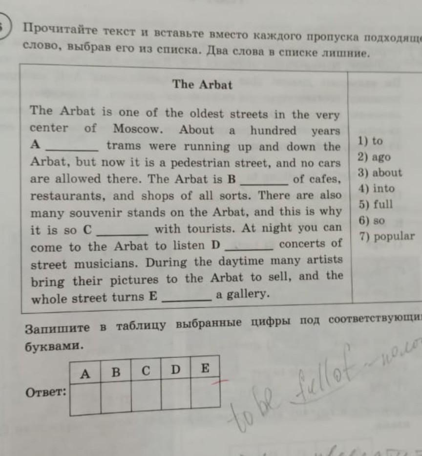 прочитайте текст и вставьте вместо пропуска подходящее слово два слова в списке лишние The arbat умолЯю