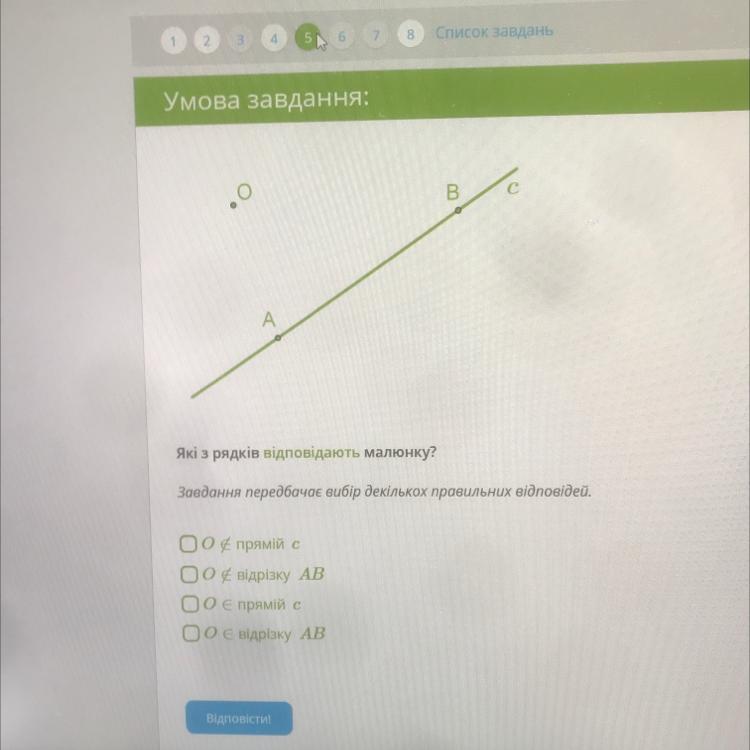 О не належить відрізку АВ-Так