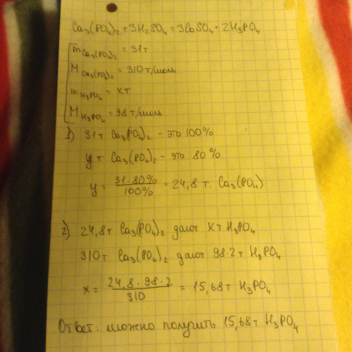 Сколько ортофосфорной кислоты можно получить из 31 т ортофосфата кальция,содержащего 20% примесей? помогите пожалуйста