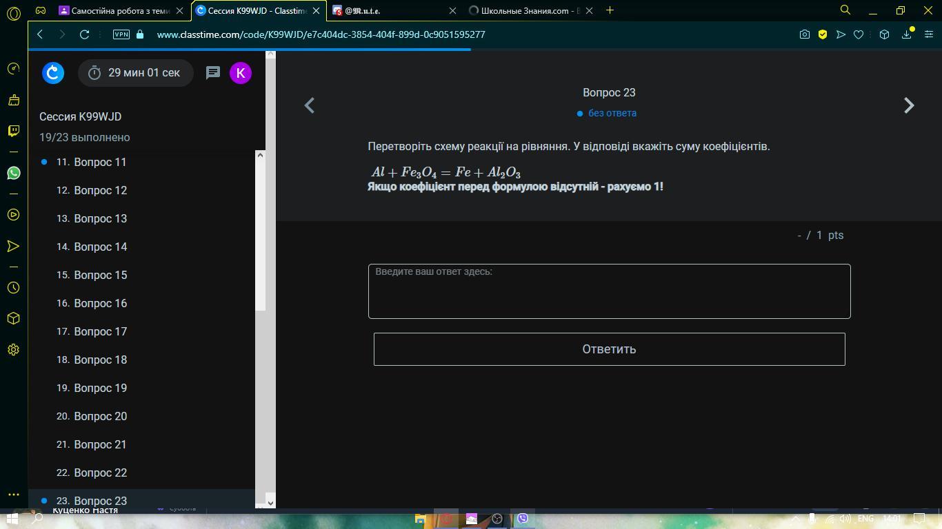 8Al + 3Fe3O4 -> 9Fe + 4Al2O3