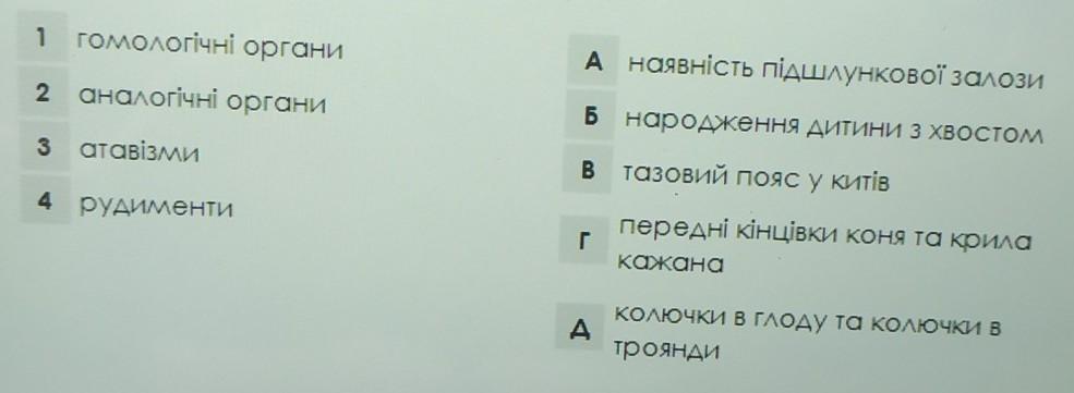 Установіть відповідність між доказали еволюції в галузі порівняльної анатомії