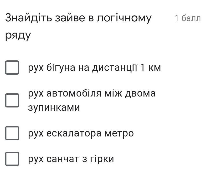 Зайвим буде бігун, тому що все інше транспорт, а бігун людина