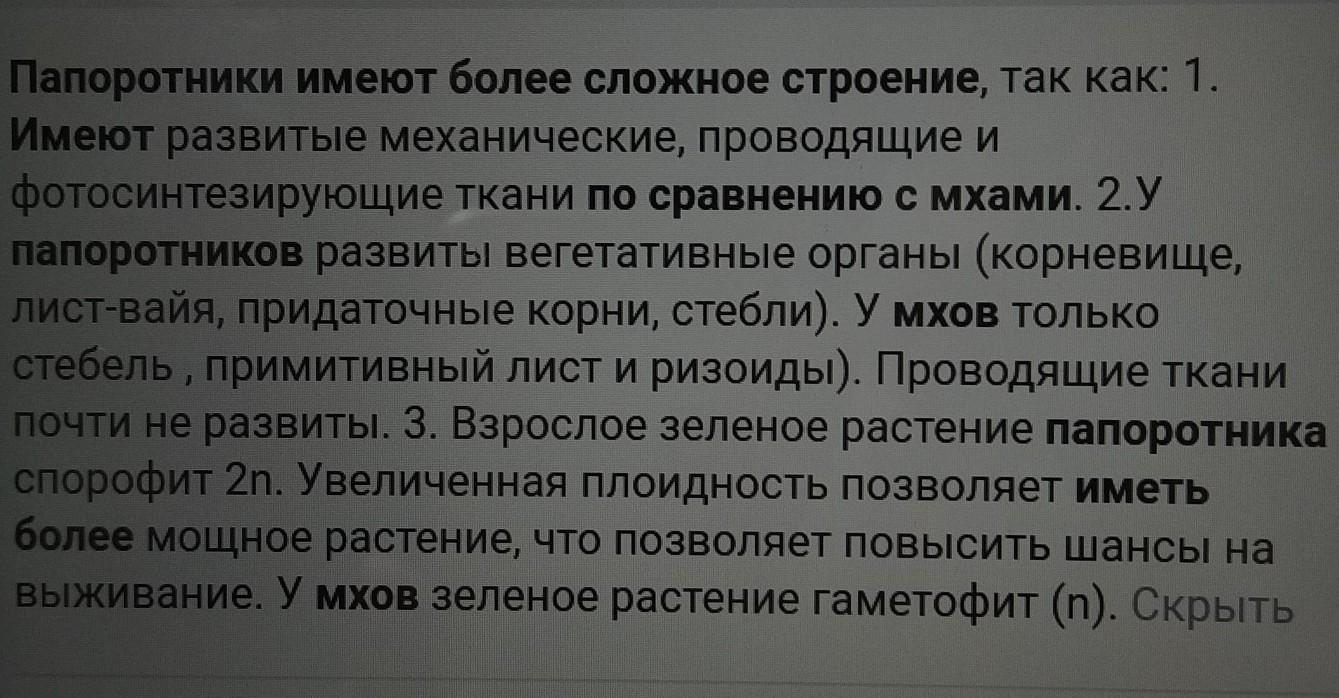 Докажите, что папоротники по сравнению со мхами имеют более сложное строение.