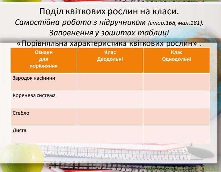 Зародок насінини - у дводольних дві сім'ядолі, у однодольних - одна