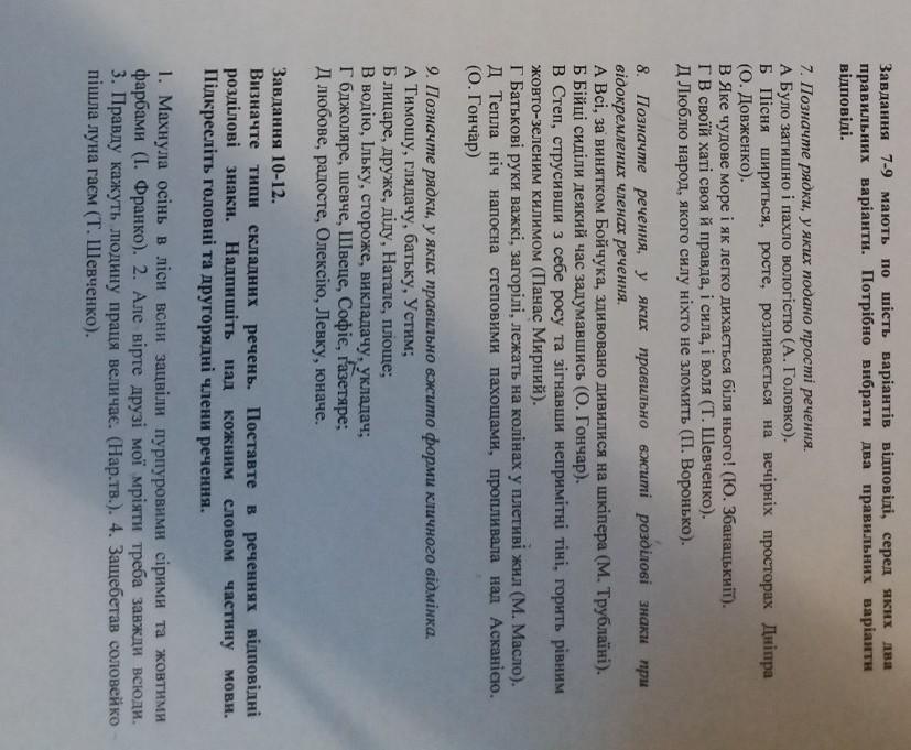 7)б,г 8)а, б,в (г не впевнений) 9)г 10) в першому реченні перед "вони" кома або тире(не повинно бути помилкою що поставити, але краще тире(як наслідок)) 11)"друзі мої" треба виділити комами. 12)Правду кажуть: людину праця величає.