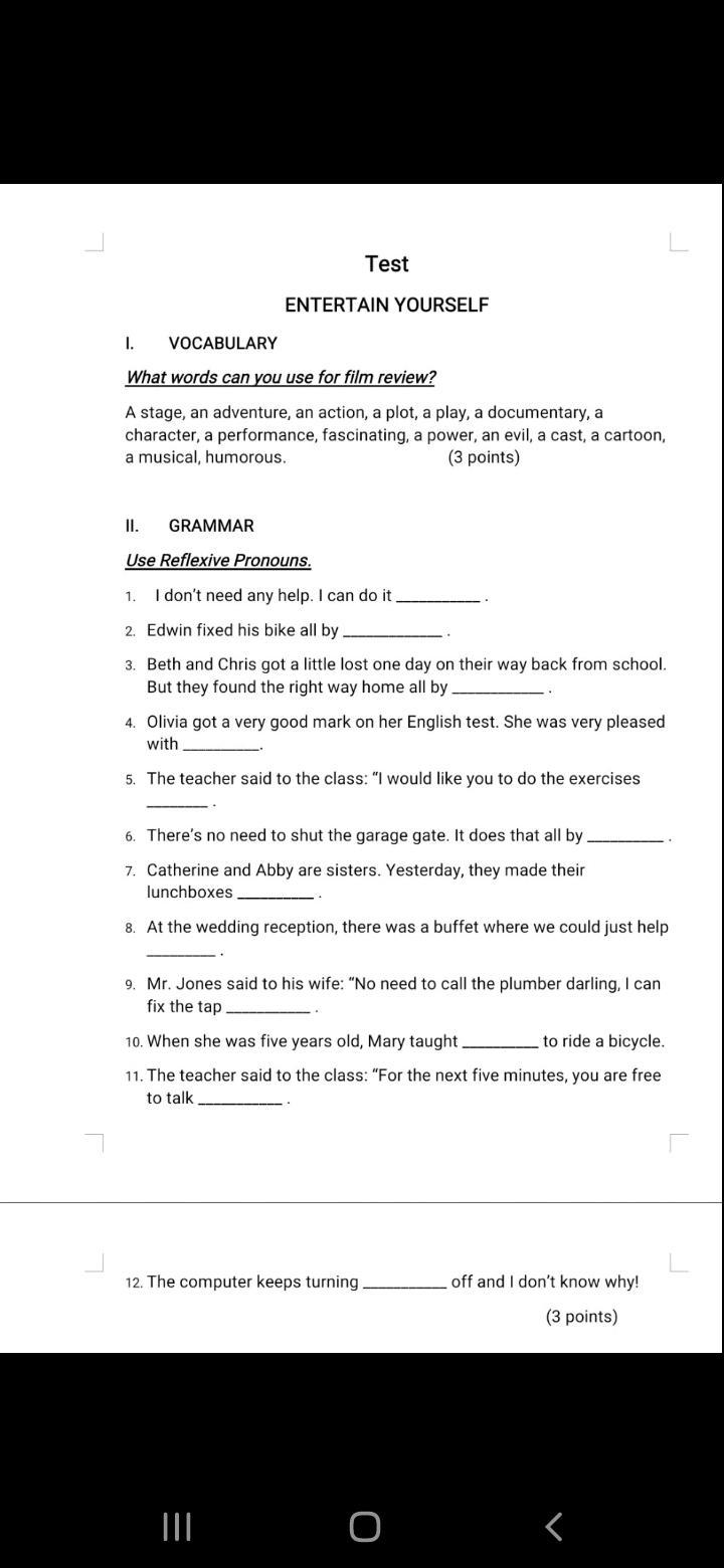 Olivia got a very good Mark on her english test. She was very pleased with herself.